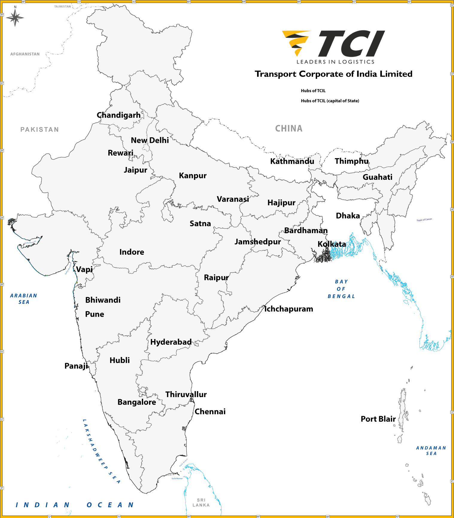 TCI Freight in collaboration with TCI Bangladesh & TCI Nepal, also provides end-to-end logistics solutions for international locations across Bangladesh, Nepal & Bhutan.
